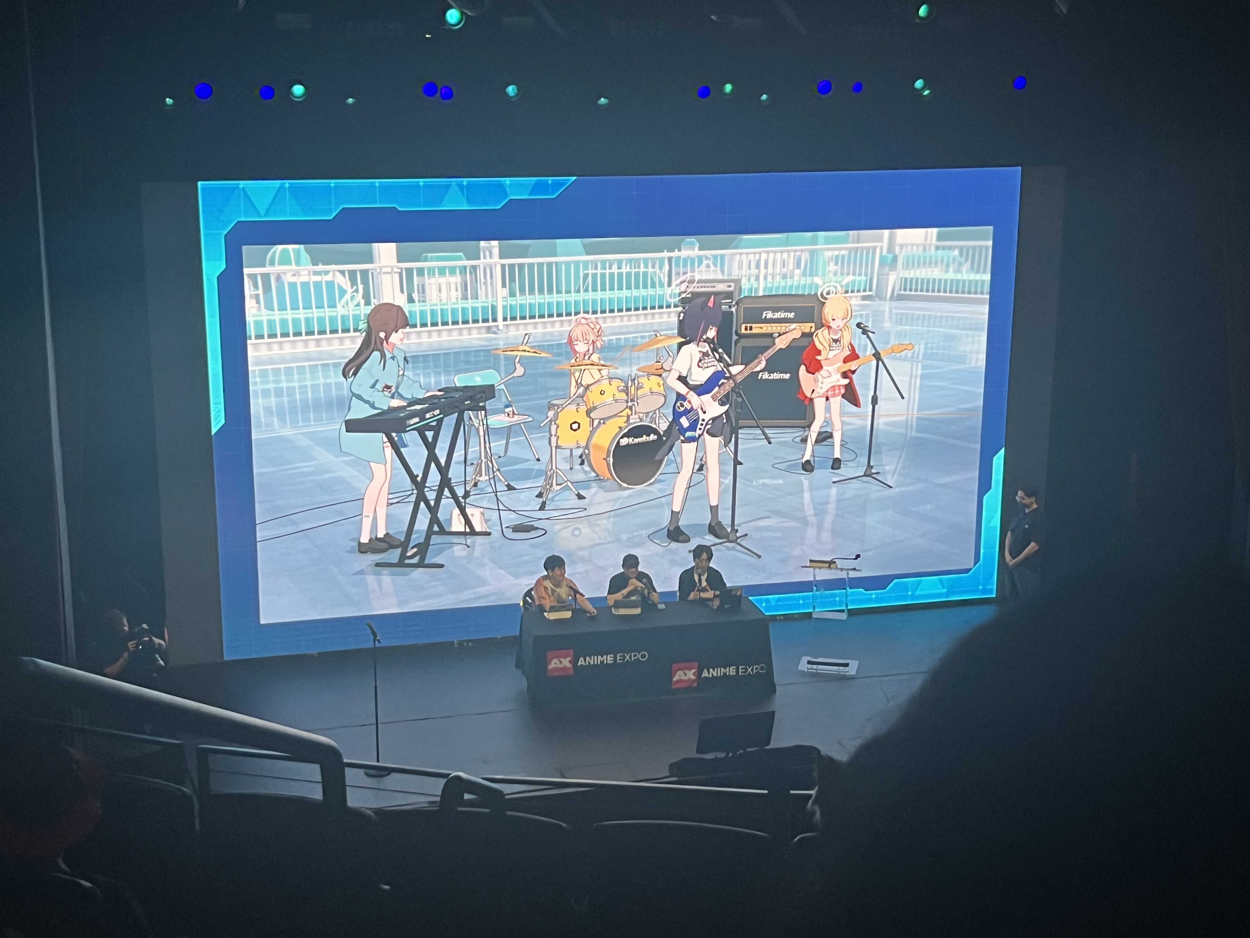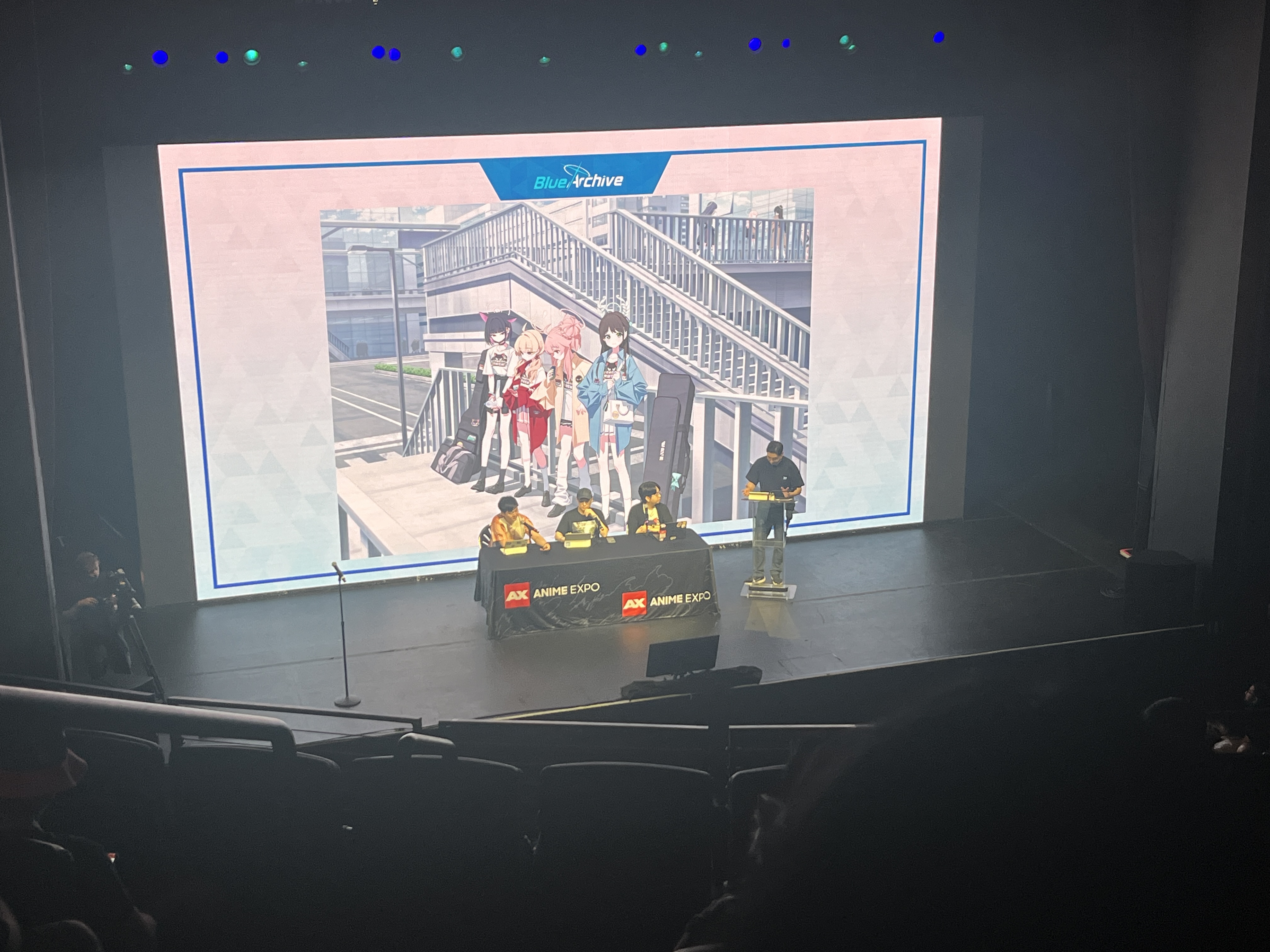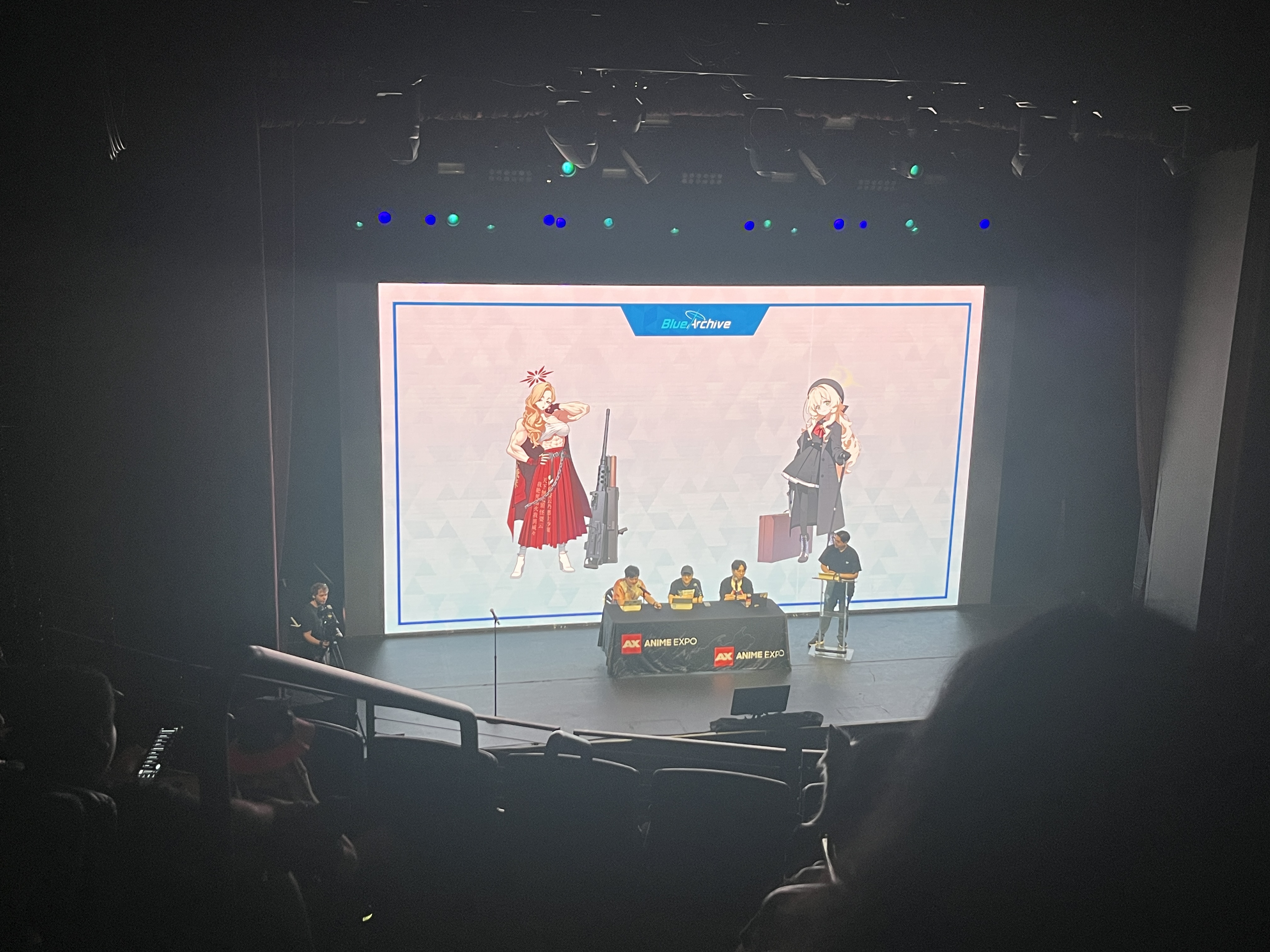 Now, for the actual reason why I wanted to write this post in the first place, my experiences at Anime Expo 2025. Of course, as you know, the first thing that I went to at AX was the blue archive panel. I was personally really excited for this panel, since its for one of my favorite games, and I really wanted to meet the developers of the game (who also interact a good bit with the community as well). The panel itself was pretty fun, and the devs mostly just covered the new content that's going to be coming out in the game. They also revealed the new PV for the upcoming chapter, which I have unfortunately spoiled for myself because I keep up to date with the JP server (which gets their content first). Still, it was really cool to see the PV on the big screen with high quality audio and visuals. They also showed off some of the concept art as well as character designs, which was also really cool.